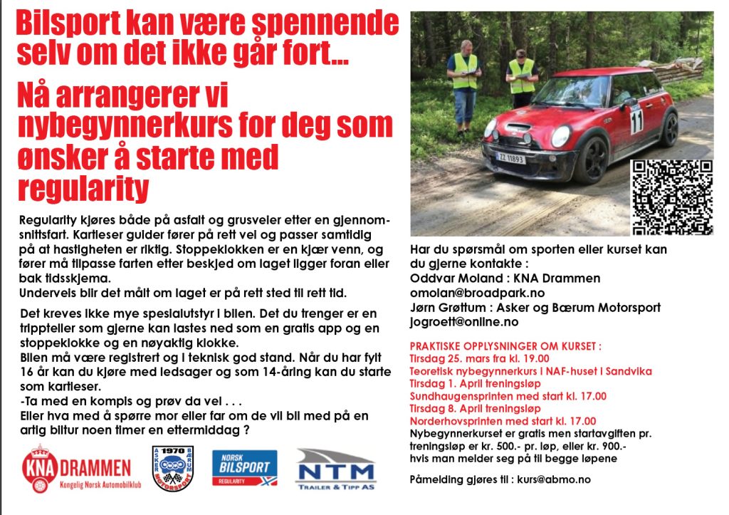 Nytt kurs påmelding og kr 300.-