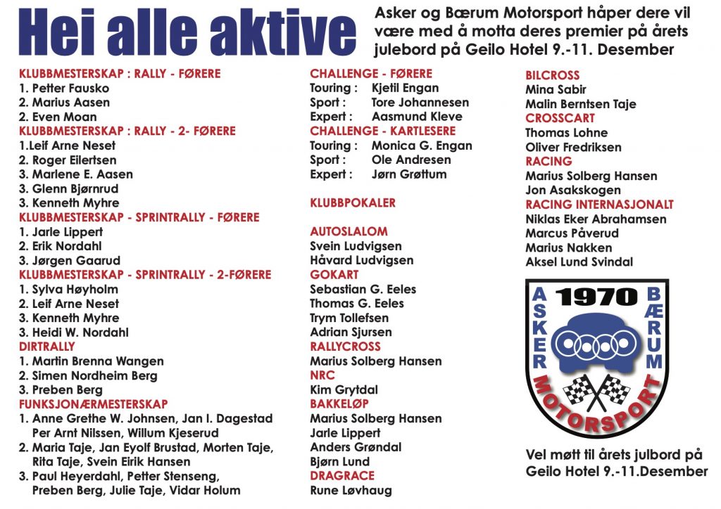 Dette videreføres i den nye klubben Asker og Bærum Motorsport og Grasrotandelen deles ut for 14 gang i 2022.