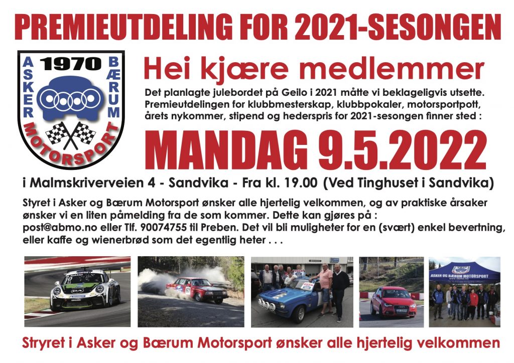 Premieutdeling Sandvika 9 mai 2022 for 2021