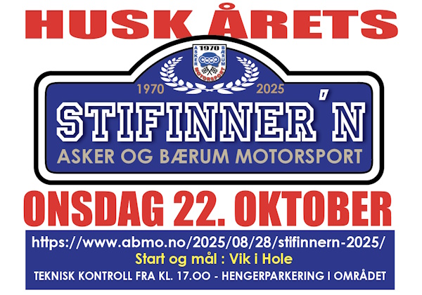 Stifinnern er et Regularity løp hvor poenget er å kjøre riktig løype, dette etter angitte gjennomsnittshastigheter som ikke vil overstige 50 km/t i noen del av løypa. Løypa går via Røyselandet gjennom Helgelandsmoen opp til NAF øvingsbane på Eggemoen, derfra returnerer deltakerne til Vik torg via ulike mindre veier. Det ventes ca. 20 deltakerbiler. Arrangør er Asker og Bærum motorsport, https://abmo.no/kontakt/